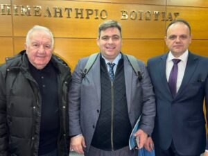 Ακόμα, ο πρόεδρος ΚΕΕΕ παραβρέθηκε στη Λειβαδιά και την κοπή της πρωτοχρονιάτικης πίτας του Επιμελητηρίου Βοιωτίας, έχοντας την ευκαιρία να συνομιλήσει με τον πρόεδρο, Κωνσταντίνο Στάικο, το ΔΣ και επαγγελματίες και εκπροσώπους φορέων της περιοχής.